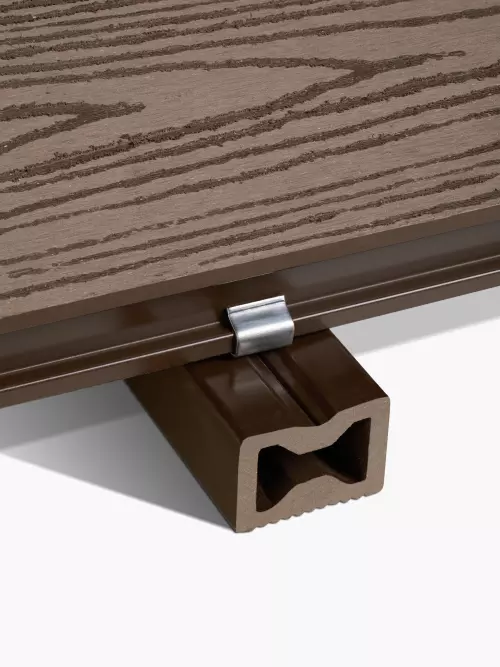 Стартовый кляймер (крепеж) используется для крепления первой и последней террасной доски к лагам с помощью саморезов. Он позволяет выполнить скрытый монтаж настила без видимых элементов крепежа. Благодаря этому терраса приобретает аккуратный, эстетичный и цельный внешний вид.